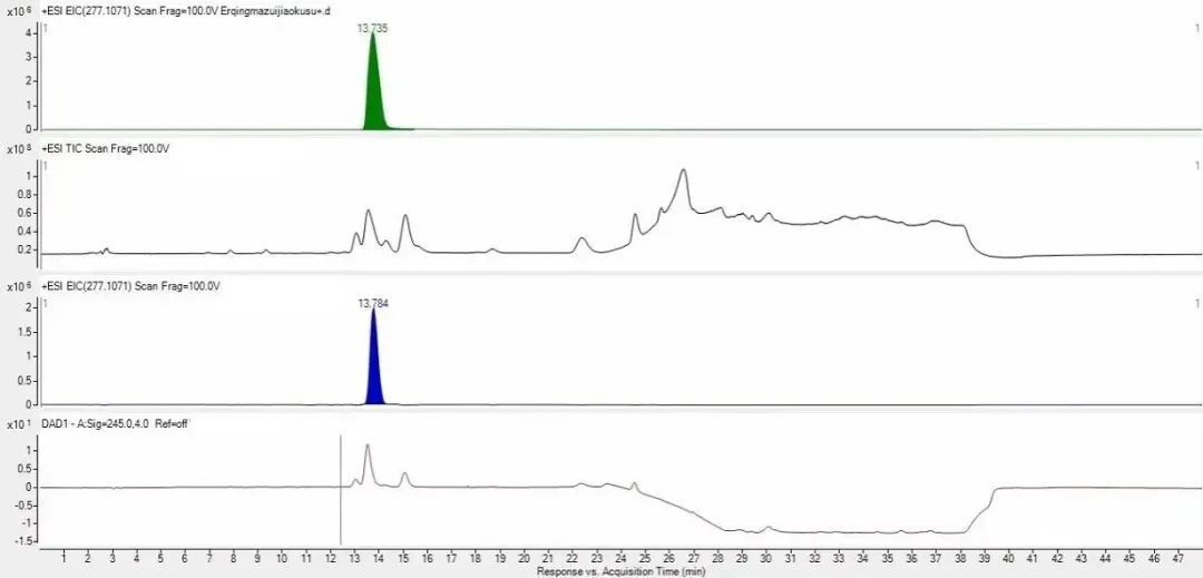 適用于無紫外吸收、色譜分離難度大或微量成分的定量。質(zhì)譜定量具有較高的靈敏度,是傳統(tǒng)紫外檢測器的1000倍。