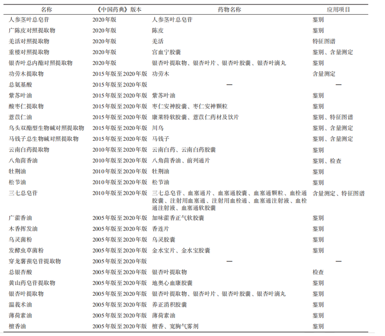 2、《中國藥典》收載的28種對(duì)照提取物應(yīng)用情況