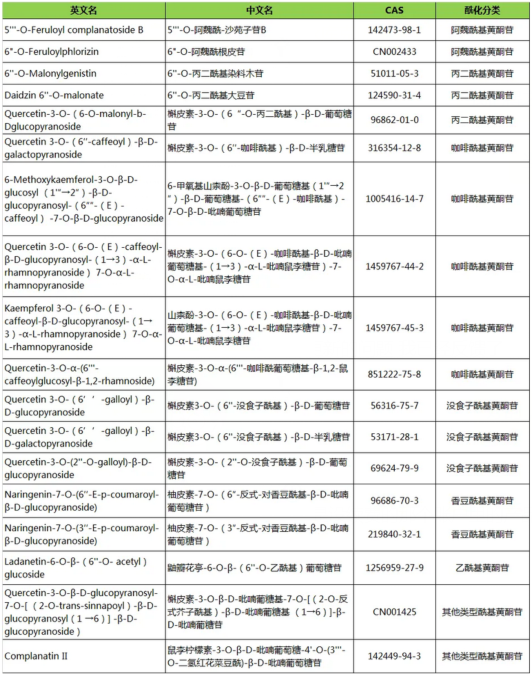 近年來,大量研究發(fā)現(xiàn)酰基化黃酮糖苷類化合物在許多植物藥中廣泛分布。相較于黃酮苷,?;Y(jié)構(gòu)穩(wěn)定性與脂溶性更好,生物利用率高,療效更顯著;?;揎椧舱鸩匠蔀樗幬镅邪l(fā)領(lǐng)域的熱點(diǎn)之一。?;S酮苷主要具有以下生物活性: