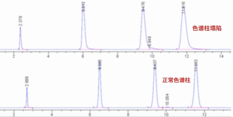 解決方案:選擇過往檢測峰形較好的樣品復(fù)驗,或使用色譜柱廠家推薦的柱效測試方案進行驗證,如明確為柱效下降可嘗試色譜柱再生或更換新的色譜柱。