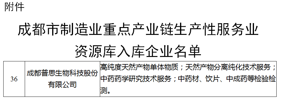 喜報!成都普思生物入選成都市制造業(yè)重點產(chǎn)業(yè)鏈生產(chǎn)性服務(wù)業(yè)資源庫