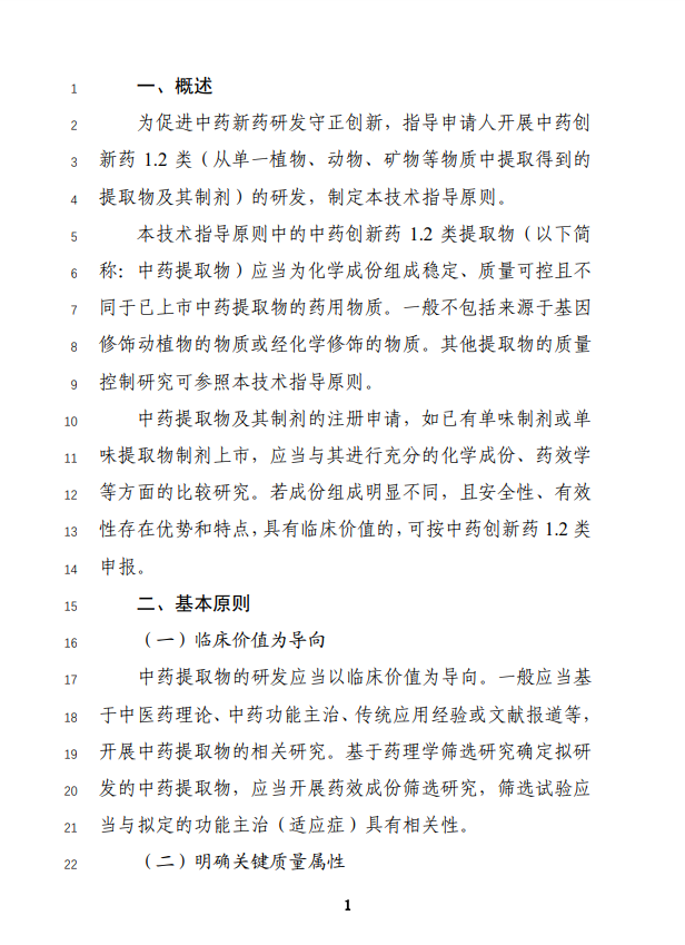為促進(jìn)中藥新藥研發(fā)守正創(chuàng)新,指導(dǎo)申請人開展中藥創(chuàng)新藥1.2類(從單一植物、動物、礦物等物質(zhì)中提取得到的提取物及其制劑)的研發(fā),藥品審評中心組織起草了《中藥提取物質(zhì)量控制研究技術(shù)指導(dǎo)原則(征求意見稿)》。