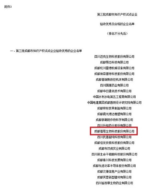 熱烈祝賀普思生物成都市第三批知識產(chǎn)權(quán)試點(diǎn)企業(yè)驗(yàn)收優(yōu)秀
