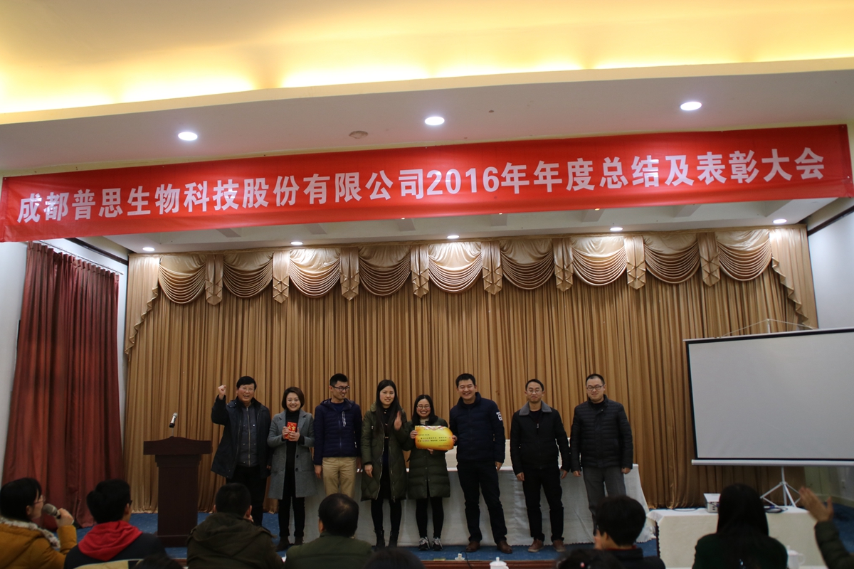 舊歲已展千重錦,新年再進(jìn)百尺竿!2016年是普思生物在“新三板”掛牌上市的第二年,這一年普思生物實現(xiàn)了快速的發(fā)展,收獲了較為滿意的成績,借著這股勢頭相信普思生物將會在丁酉雞年取得更輝煌的成就!2017年1月6日,公司在武侯區(qū)御翠草堂迎來了2016年年度工作總結(jié)暨表彰大會。會上公司領(lǐng)導(dǎo)和各部門負(fù)責(zé)人發(fā)表了熱情洋溢的講話,總結(jié)過去的2016年工作,并對2017年的工作作出部署和安排。會上還對2016年度優(yōu)秀員工、優(yōu)秀項目負(fù)責(zé)人、優(yōu)秀管理人員、優(yōu)秀團隊、十年奉獻(xiàn)獎、季度“星級員工”以及年度優(yōu)秀軟文進(jìn)行了表彰,并頒發(fā)了獎勵。晚上公司全體員工一起共享豐盛的晚宴,全體員工度過了一個溫馨、愉快的夜晚。