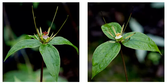 重樓屬(Paris)植物是重要的藥用植物資源,全球約40種(變種),近一半有藥用記載。由于過(guò)度采挖,野生重樓資源面臨枯竭,人工栽培日趨活躍。中國(guó)科學(xué)院昆明植物研究所王躍虎研究組,于17年5月份在湖北省竹溪縣境內(nèi)考察時(shí),發(fā)現(xiàn)了重樓屬家族的新成員——啟良重樓Paris qiliangiana H.Li, J.Yang & Y.H.Wang
