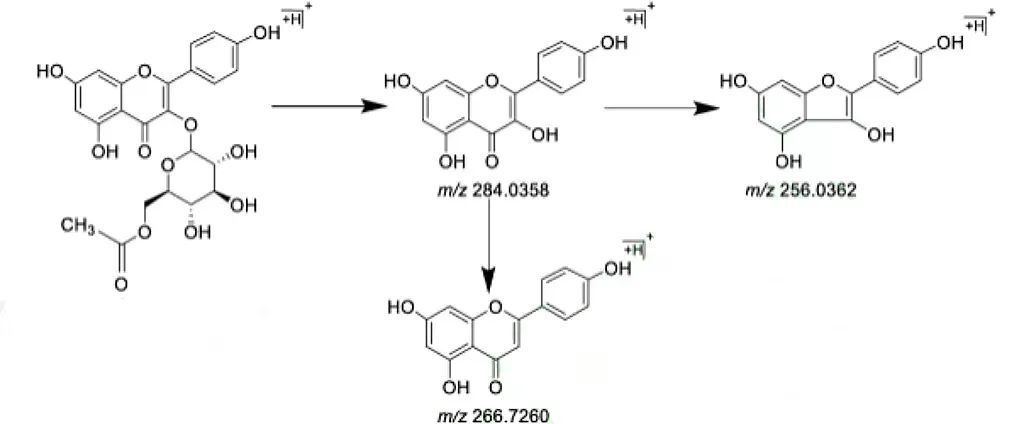 以天然產(chǎn)物二級質(zhì)譜庫為依托,鑒定分析藥物原型成分,再通過高分辨質(zhì)譜提取各化學(xué)成分的精確質(zhì)荷比等信息對代謝產(chǎn)物進行辨識研究,從而分析藥物代謝途徑,明確藥物代謝過程,為藥物物質(zhì)基礎(chǔ)研究打下基礎(chǔ)。