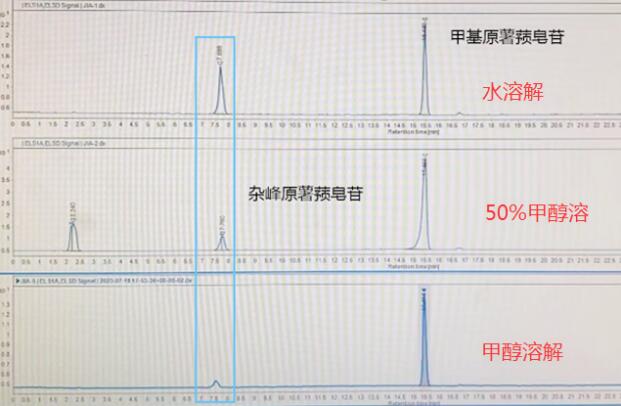 原因:部分對(duì)照品在當(dāng)前溶劑下溶解性較差,在溶解時(shí)對(duì)照品或其雜質(zhì)溶解不充分,從而導(dǎo)致純度異常。