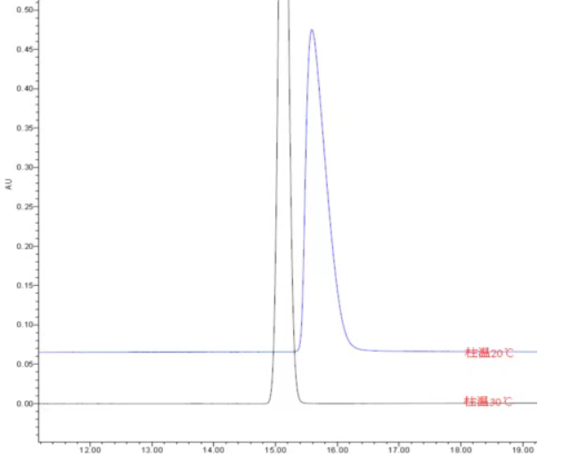 原因:柱溫設(shè)置過低,會使流動相粘度增加,對照品在柱內(nèi)的擴散和傳遞速度變慢,可能會導(dǎo)致峰前沿。